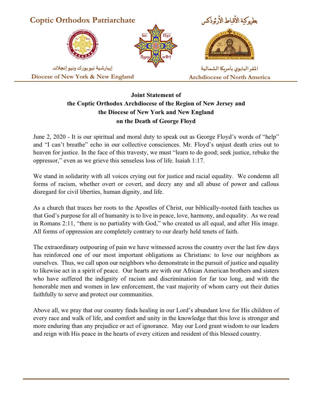 Joint Statement on the Death of George Floyd